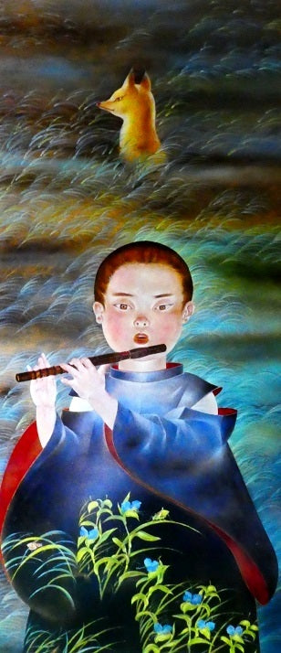 後で知ったことだが、棚田道の三本松付近一帯は、「弥生時代の集落跡」で、耕地整理の折りに出土発掘したらし。今は松も伐られ、アスファルトの農道を軽トラの兄ちゃんが驀進。小僧の笑い聲も消えた。今でも、時折ふいと「クッククッ」と弥生小僧の笑い聲が聴こえる。お伽草子めいた話ではあるが、あの「笑童子の聲」は、私の創作の「原点」なのかもしれないと思う。なぁ、弥生小僧よ。